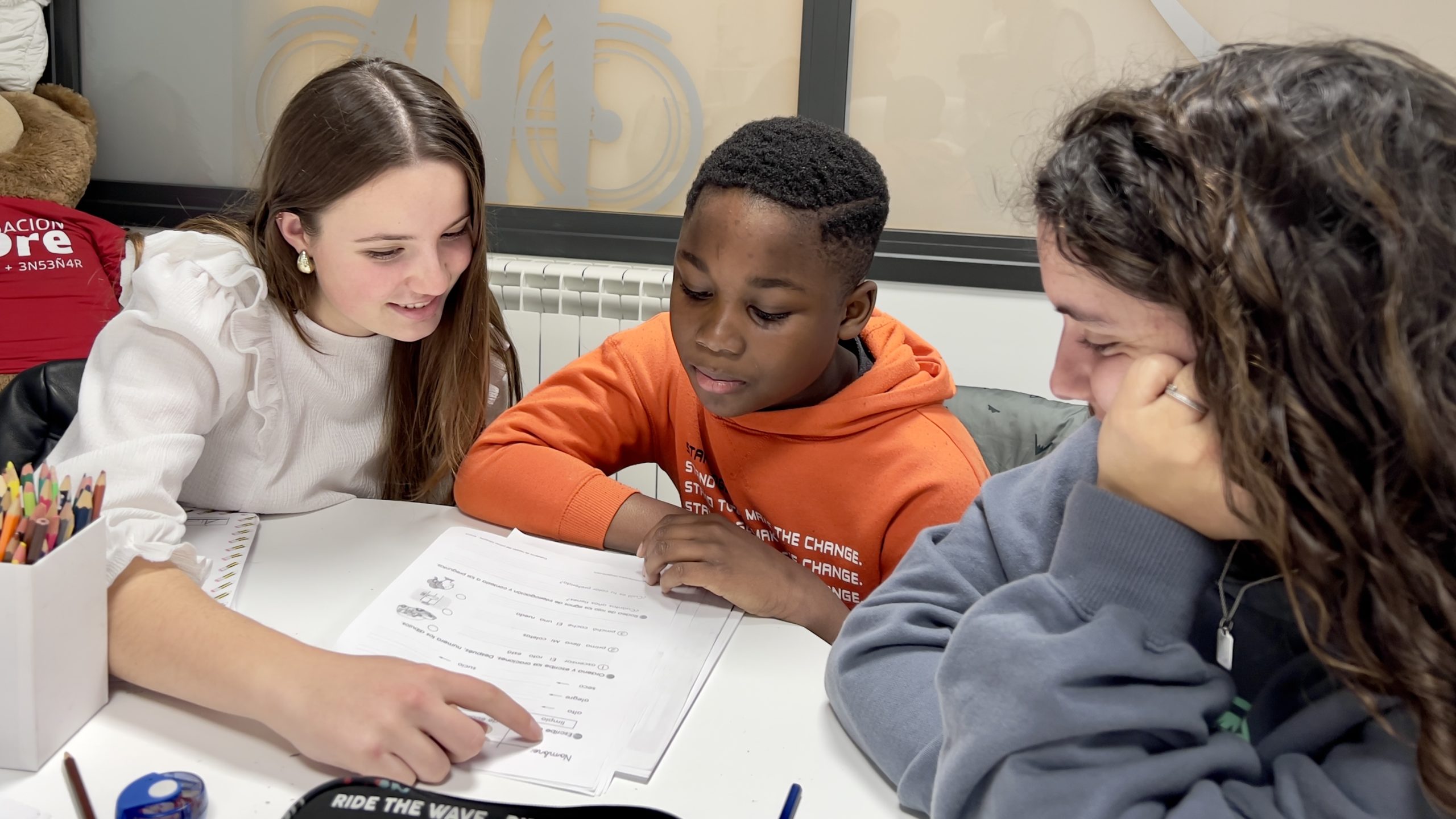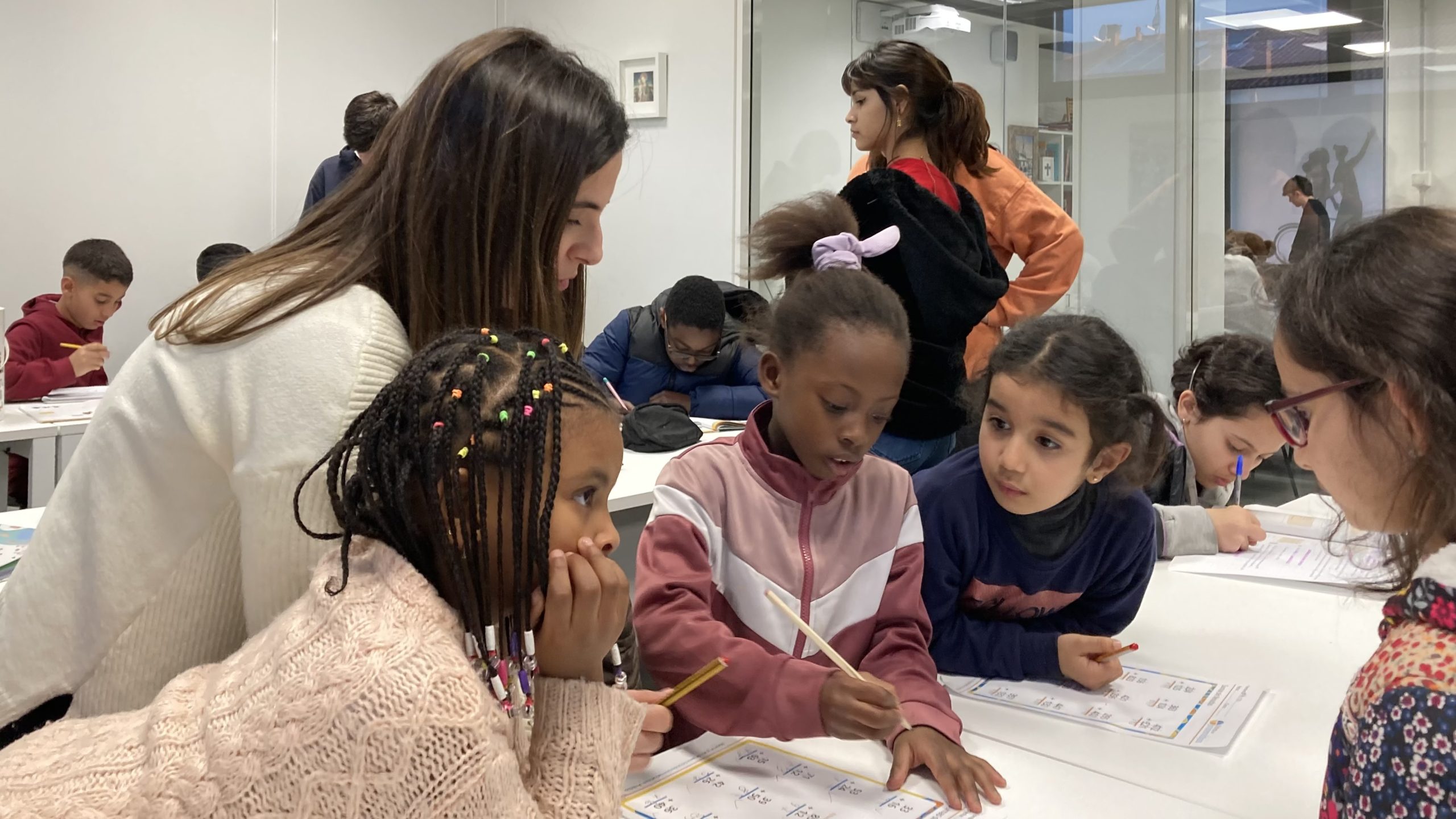 Apoyo escolar integral para hijos de familias migrantes, centrado en el refuerzo académico, la creación de hábitos de estudio y la superación de barreras idiomáticas o culturales.
